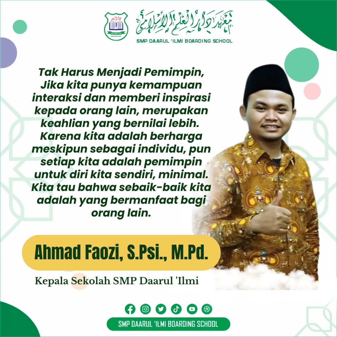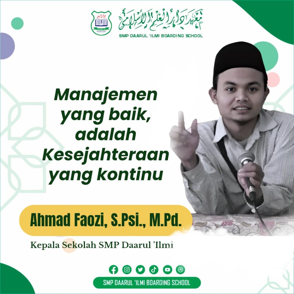 “Manajemen yang baik, adalah kesejahteraan yang kontinu.” (Ahmad Faozi, S.Psi., MPd. – Kepala Sekolah SMP Daarul Ilmi Boarding School)