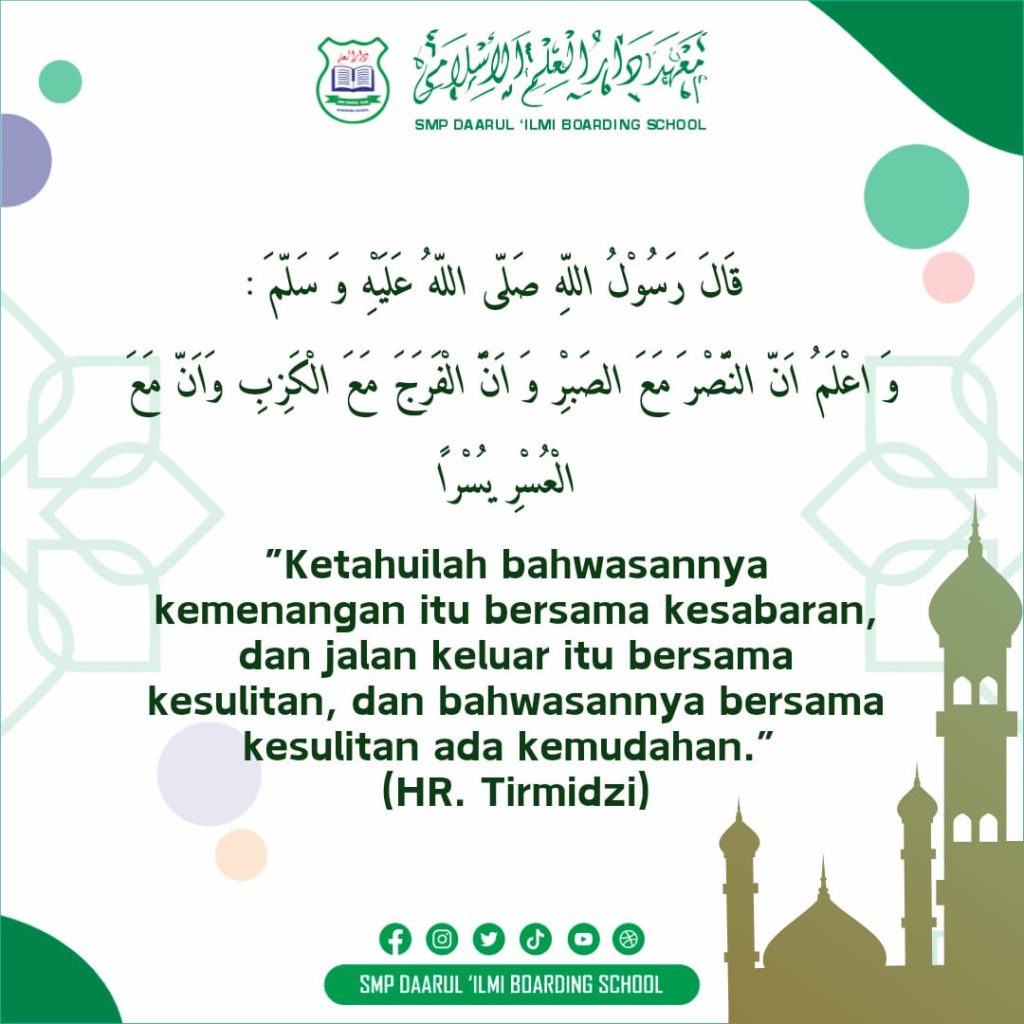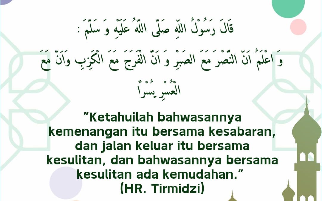 “Ketahuilah bahwasannya kemenangan itu bersama kesabaran, dan jalan keluar itu bersama kesulitan, dan bahwasannya bersama kesulitan ada kemudahan.” (HR. Tirmidzi)